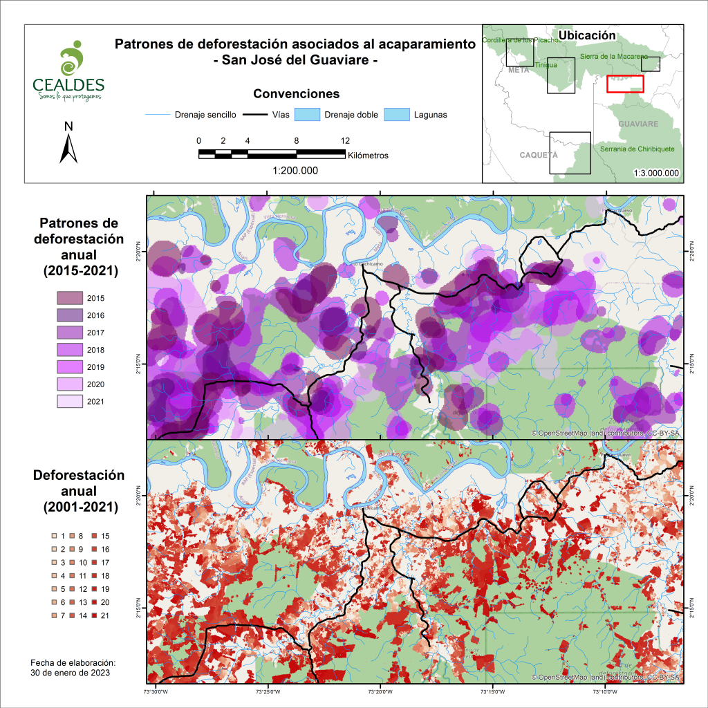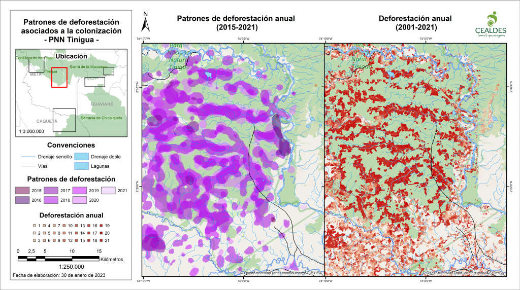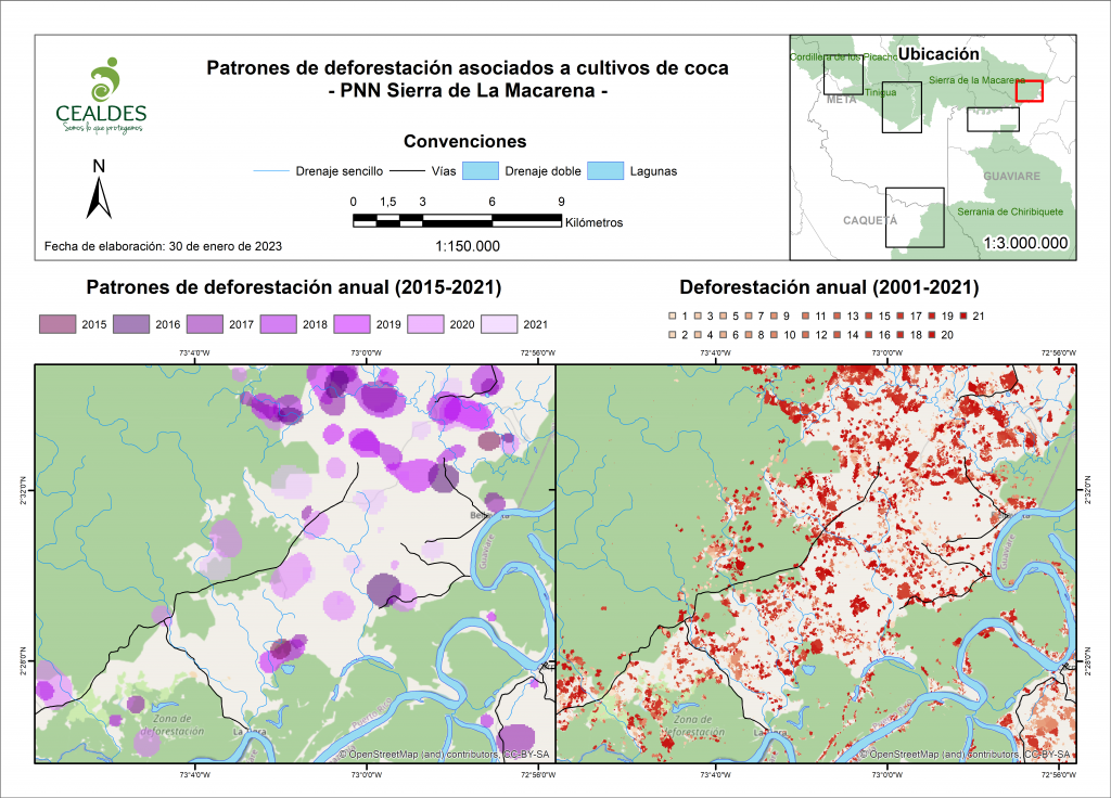 Patrones de deforestación asociados a cultivos de coca – PNN Sierra de La Macarena