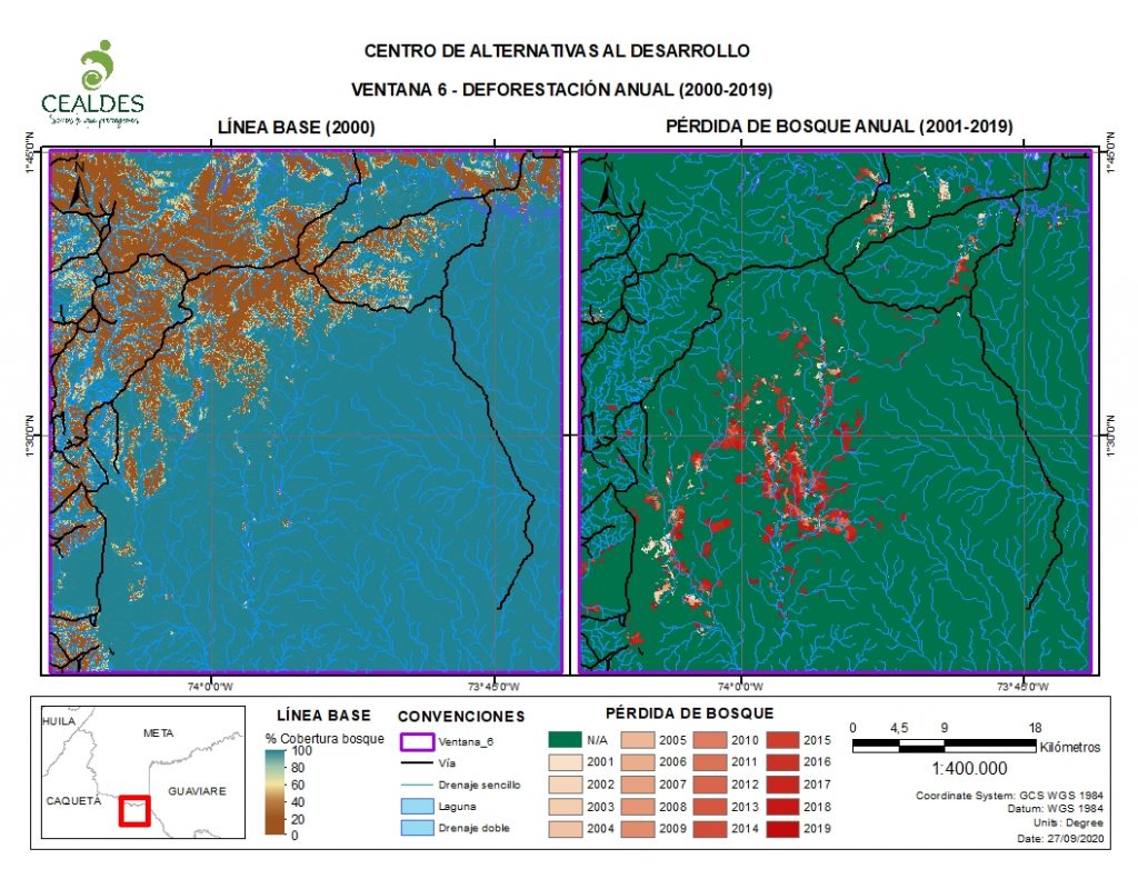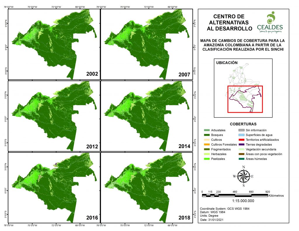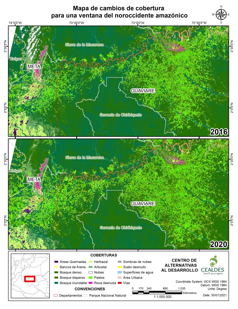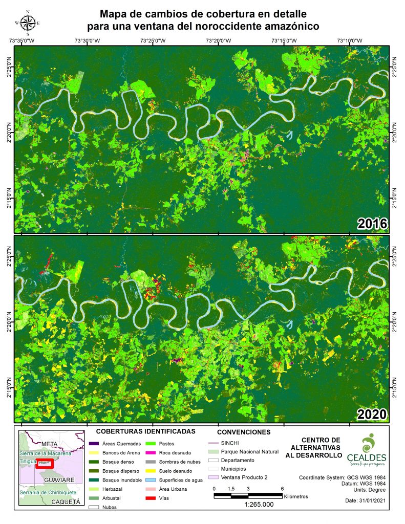 Mapa de cambios de cobertura en detalle para una ventana del noroccidente amazónico