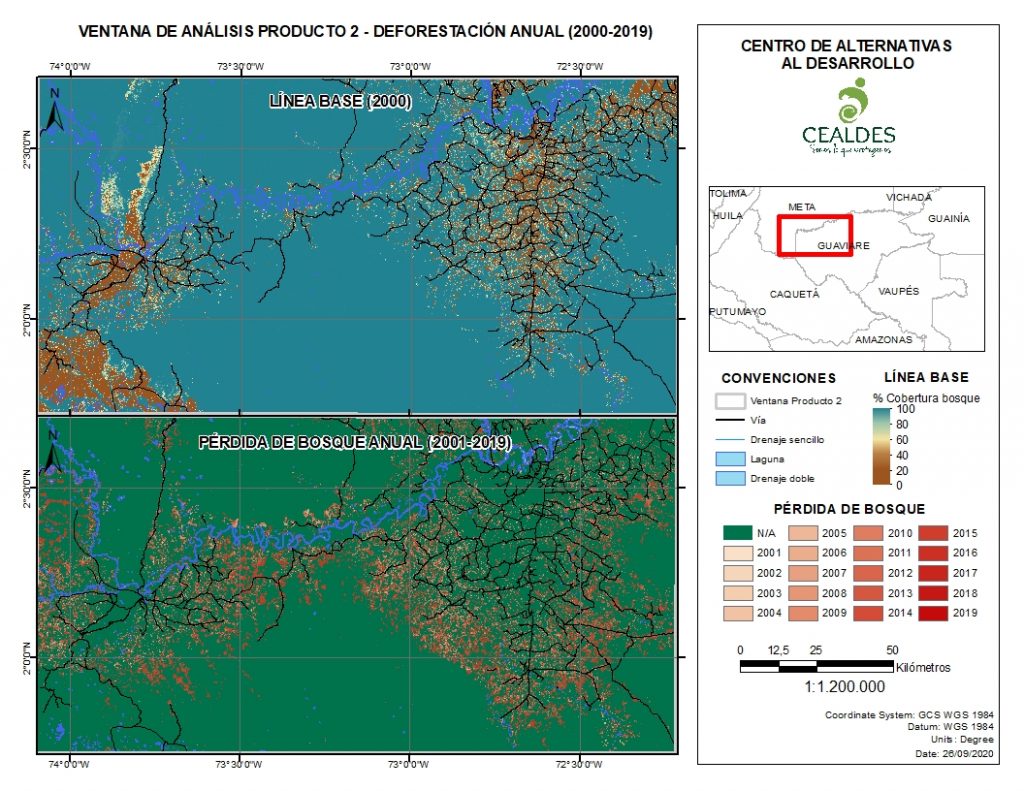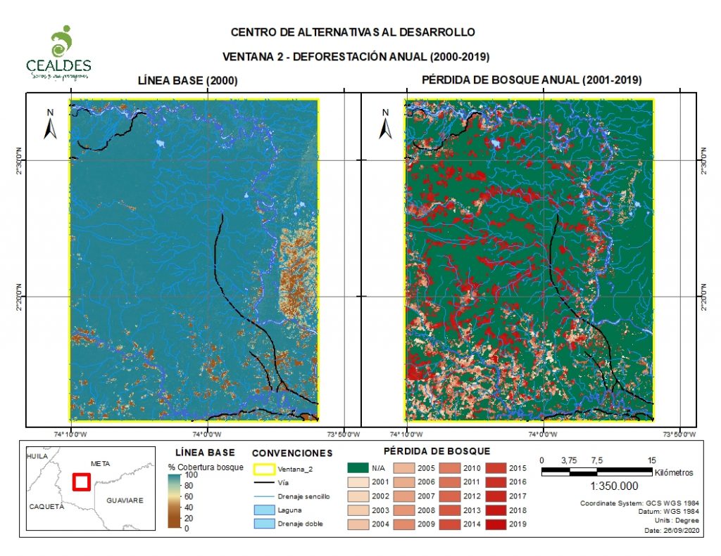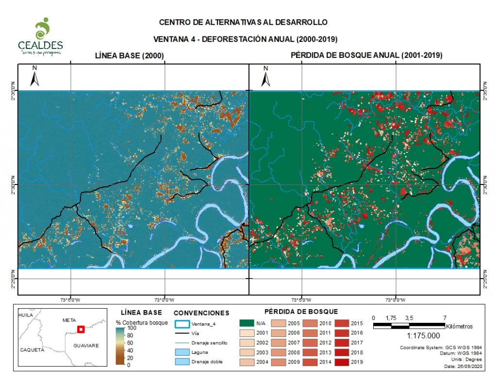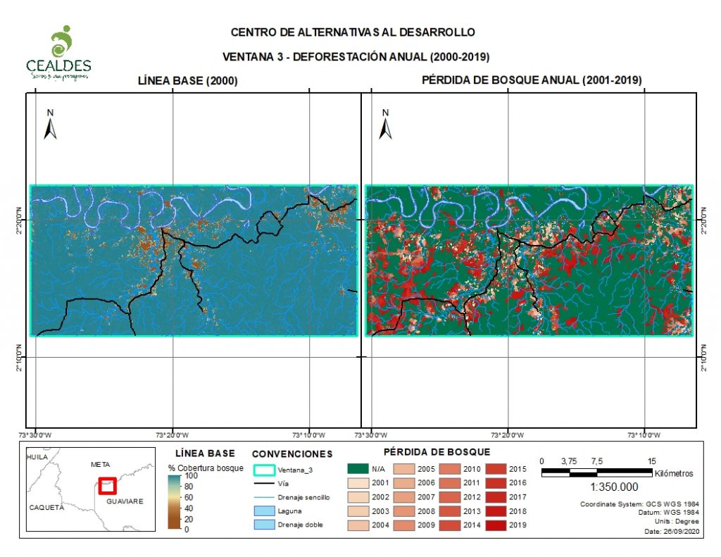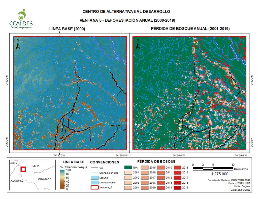 Mapa de cambios de cobertura en detalle para una ventana del noroccidente amazónico